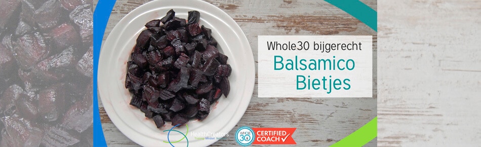 Als kind waren bietjes al het alternatief wat ik thuis kreeg wanneer ik de groenten die mijn moeder had gekookt, niet lustte. Zoet-zure, uit een potje van Hak. Ik lustte ze zelfs koud (en ik vraag me af of ik dat nu nog lekker zou vinden). Deze Whole30 variant heeft geen toegevoegde suiker, zodat je het zoet van de bietjes zelf nog kan proeven... naast de balsamico!